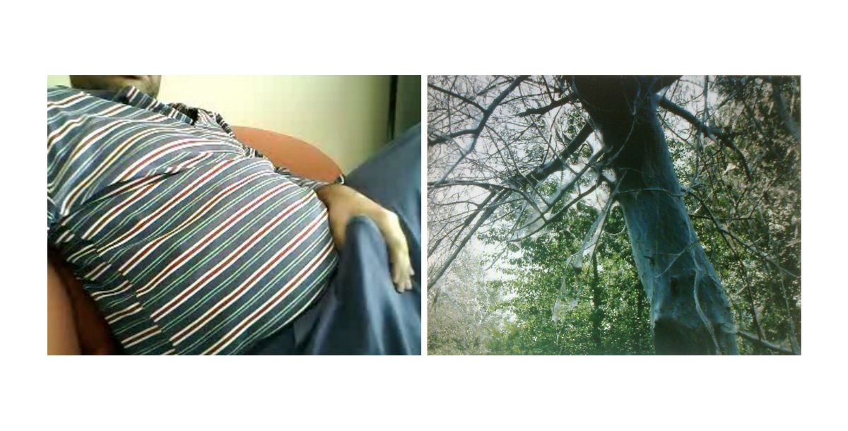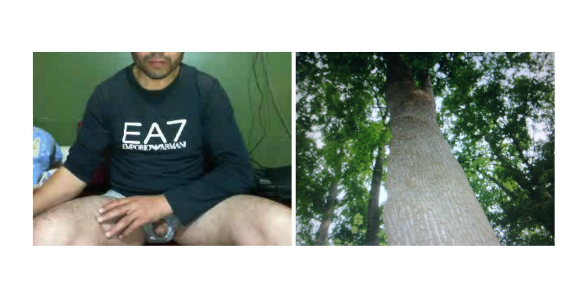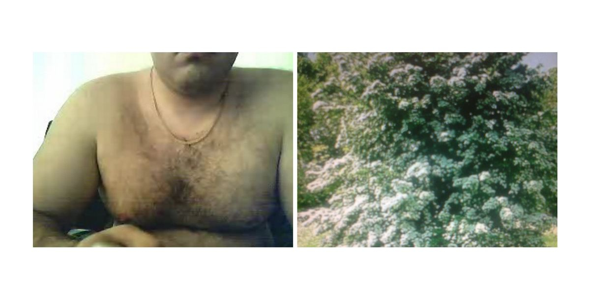 В какой-то момент, проводя время в видео чате со своими друзьями, меня зацепило интересное увлечение некоторых молодых и не очень людей из разных стран, показывать на камеру свои половые органы, причём делая это иногда самыми неординарными способами. Я начал уделять больше времени этим чатам, специально стараясь найти именно таких людей. Я ждал, пока мне попадётся такой собеседник, после чего “фотографировал” его при помощи клавиши “Prt Sc”. За всё время, что я провёл в видео чатах, я запечатлел примерно 200-300 таких персонажей, после чего отобрал самых интересных на мой взгляд. Так появилась левая сторона картинки. Для правой стороны я выбрал деревья. Фотографии с ними создавались при помощи мобильного телефона с камерой 3,2мп., монитора и “Google”. Левую часть я сопоставил с фотографиями деревьев, так как они, как мне кажется, больше всего символизируют одиночество.