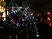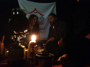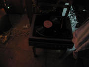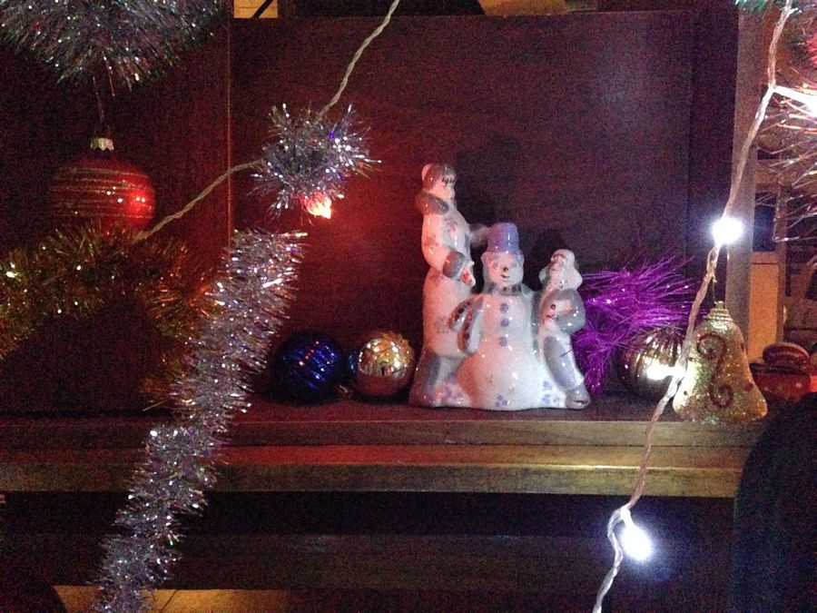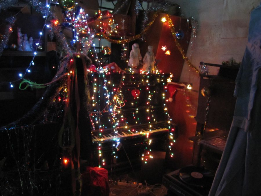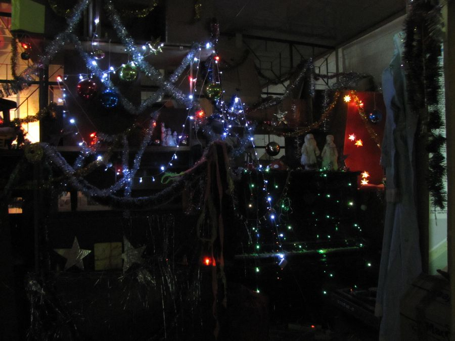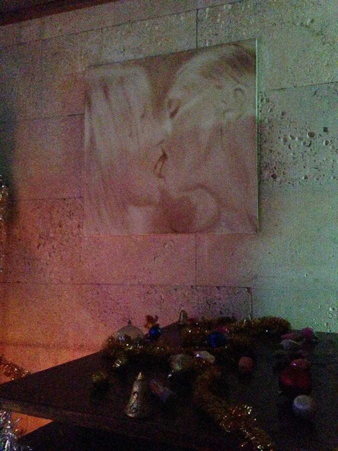 Вячеслав Машницкий, великодушно согласившийся стать участником «арт-подвального» действа, соорудил в местных катакомбах ностальгический уголок «В предчувствии Нового года». Оно, конечно, тоже а-ля «совок», но как-то по-другому, по-доброму. Потому и ностальгия здесь расцвела иная - праздничная, сдобренная известным «новогодним» набором визуальных впечатлений, запахов и звуков. Проще говоря, было все – сияющая огнями елка, наряды Деда Мороза и Снегурочки, небрежно висящие на крючках (время придет и они уверенно обхватят чьи-то тела), аромат мандарин, стреляющее пробкой в глаз шампанское… И даже исконно русский саунд-трек о «зимушке-зиме» на виниле не вызвал желание ломать пластинки о крепкое патриотическое колено. Это как бы общее прошлое, что ж теперь делать вид, что ничего между нами не было?