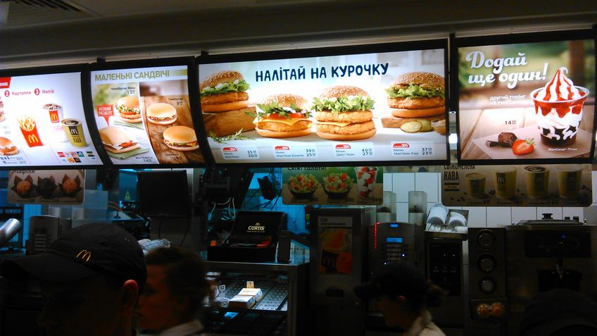 Вот уже четверть века как Макдональдс это наш символ, и не только эпохи, но и наш, наш. Макдональдс это символ освобождения и порабощения одновременно. Кому что по душе. Жратва в Макдональдсе такая, что не ошибешься: невкусно, но и не отравишься. Хорошая жратва, стандартная, нормальная... И люди туда ходят нормальные, стандартные. Телки похожи на телок из американского сериала, пацаны – прыщавы. Все нормально. И интерьер, то есть мактерьер, тоже нормальный, стандарный. Наш стандарт. Все ОК!