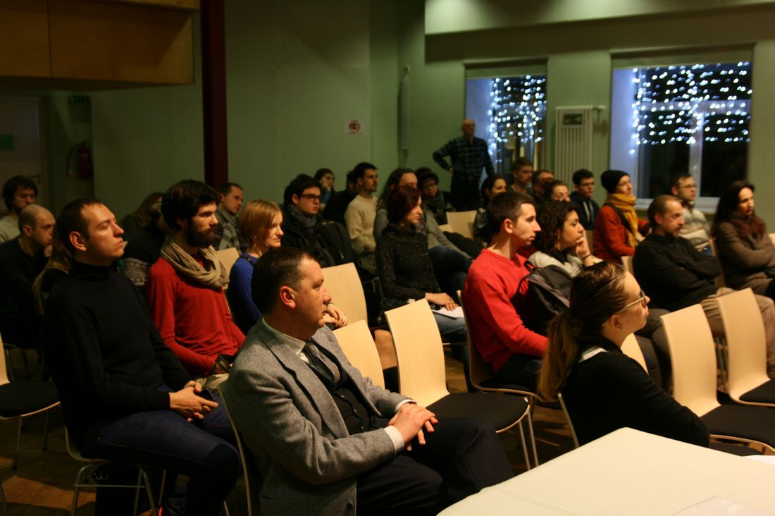 В зале собралась публика, на первый взгляд, непонятно чем объединенная, разного возраста. Молодых, студентов, конечно больше. Но в воздухе висит то ли пренебрежение, то ли зависть, мол, ну вот, опять счастливчик, которому повезло остаться на западе, да еще и в Германии, будет нас учить, а мы-то не хуже, просто нам пока не повезло. Некоторые ждут беспроигрышную схему. Но проблема в том, что Кирилл эту схему не расскажет. История того, как он попал в Германию, остался там, стал известным фотографом, гораздо сложнее той схемы, которую представляют многие присутствующие. Она любопытна, но уж точно не годится для схемы, потому что индивидуальна.
