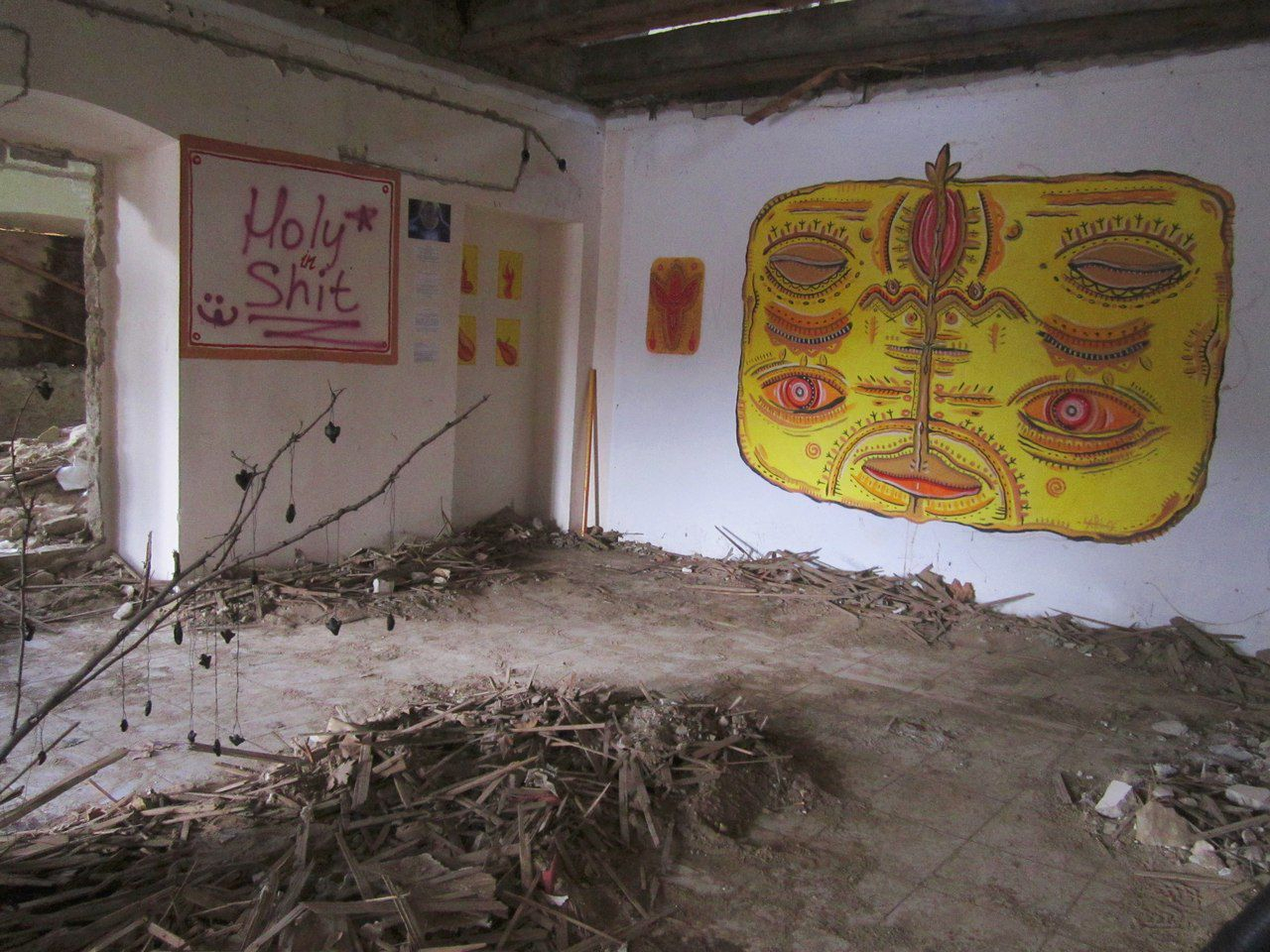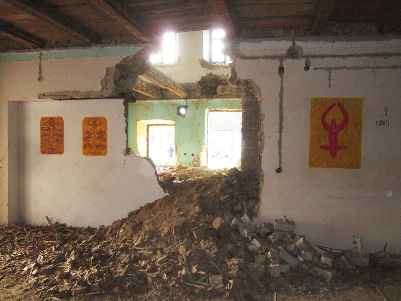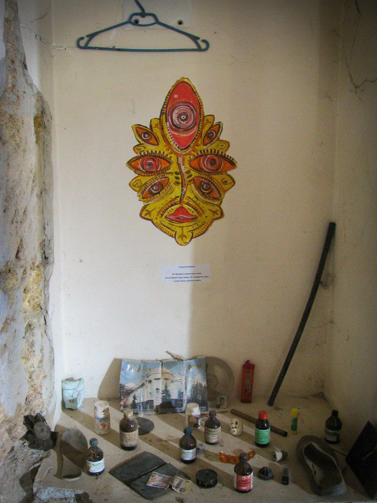 Немного про название: Прийдя в это место, моим глазам увиделась эта надпись, что и натолкнула назвать так выставку. Любое проявление творчества для меня свято, а каждый творец немножко святой. Ну а окружение, куда попало это творчество, по другому назвать трудно. Посетив выставку, вы сами испытаете запахи и чувства, и все поймете.