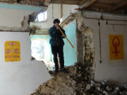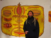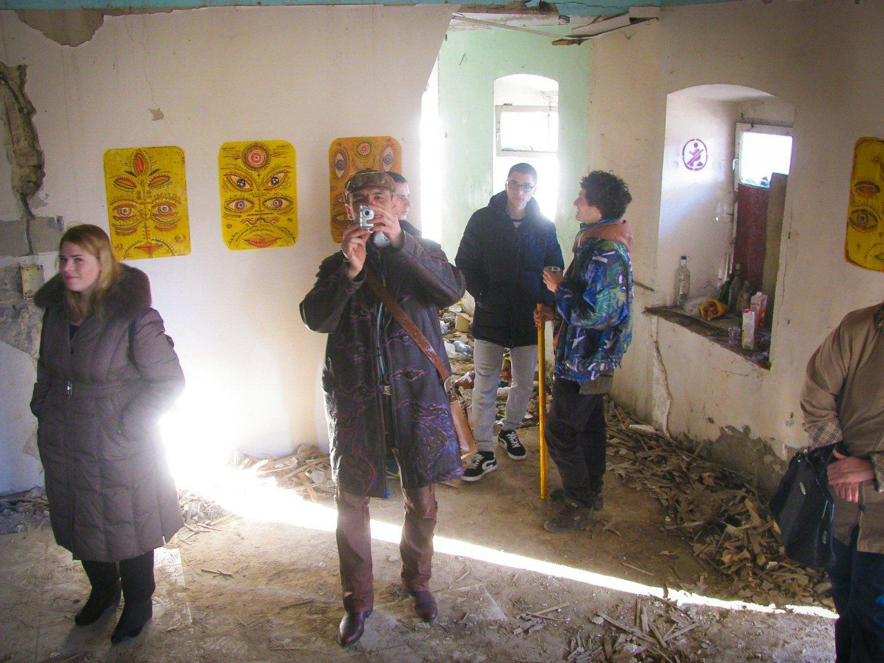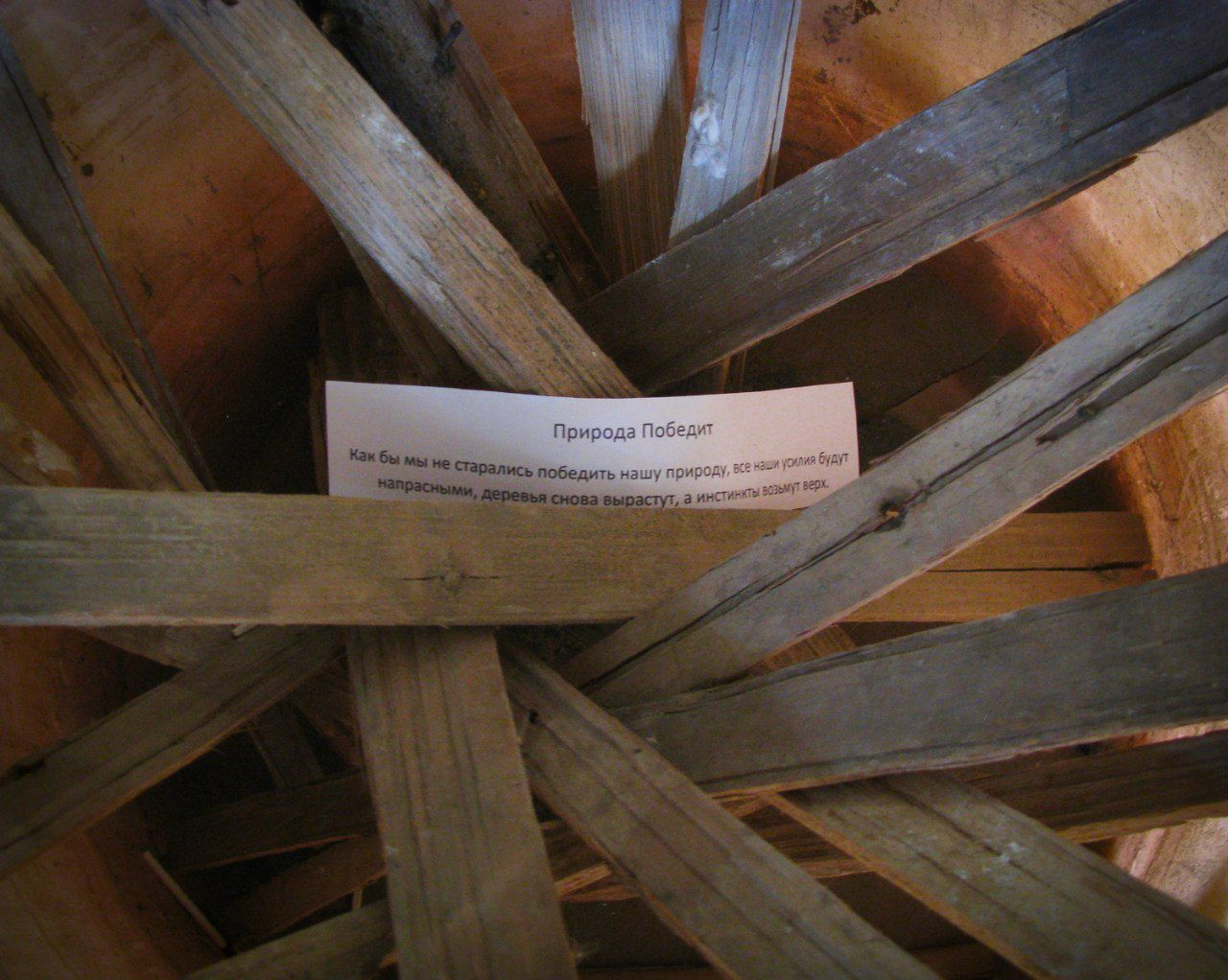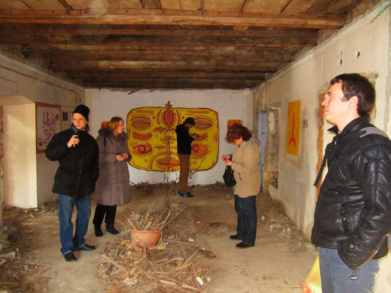 Немного про название: Прийдя в это место, моим глазам увиделась эта надпись, что и натолкнула назвать так выставку. Любое проявление творчества для меня свято, а каждый творец немножко святой. Ну а окружение, куда попало это творчество, по другому назвать трудно. Посетив выставку, вы сами испытаете запахи и чувства, и все поймете.