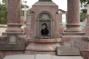 «Коптское кладбище сильно отличается от православного. Могилы-склепы представляют собой небольшие, иногда изящно украшенные домики-часовни без крыши (она не нужна, так как дождь бывает 3-4 раза в году). Сюда приходят на целый день, чтобы побыть со своими усопшими родственниками. Здесь молятся, готовят пищу. Здесь даже можно жить. Примерно такие же, только с другой символикой могилы - и на исламских кладбищах. В годы войн они заселялись беженцами».