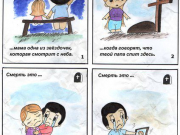 Работая над проектом вспомните, как это было в вашем детстве и, что вы тогда почувствовали. Изобразить можно что угодно: какой-то свой новый способ, как можно ребенку сообщить эту информацию, правдивым, но максимально щадящим образом; просто изобразить уже известные варианты и мифы (переселение душ, рай и тд.); любители стёба могут простебать избитые и неправдоподобные версии взрослых по этой теме. Главное помнить: это не социальный проект, здесь важны ваши образы, метафоры, ассоциации.