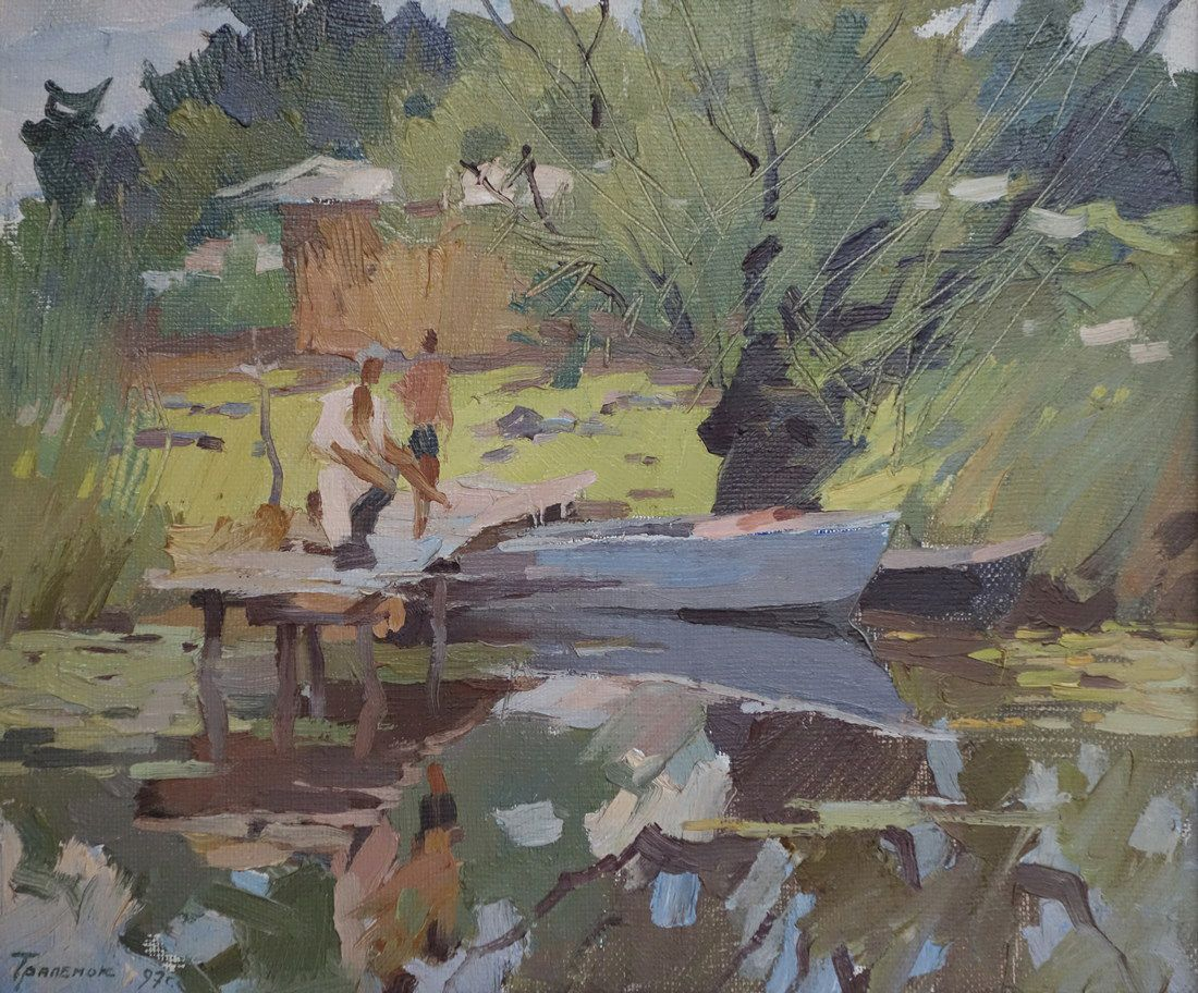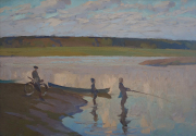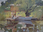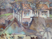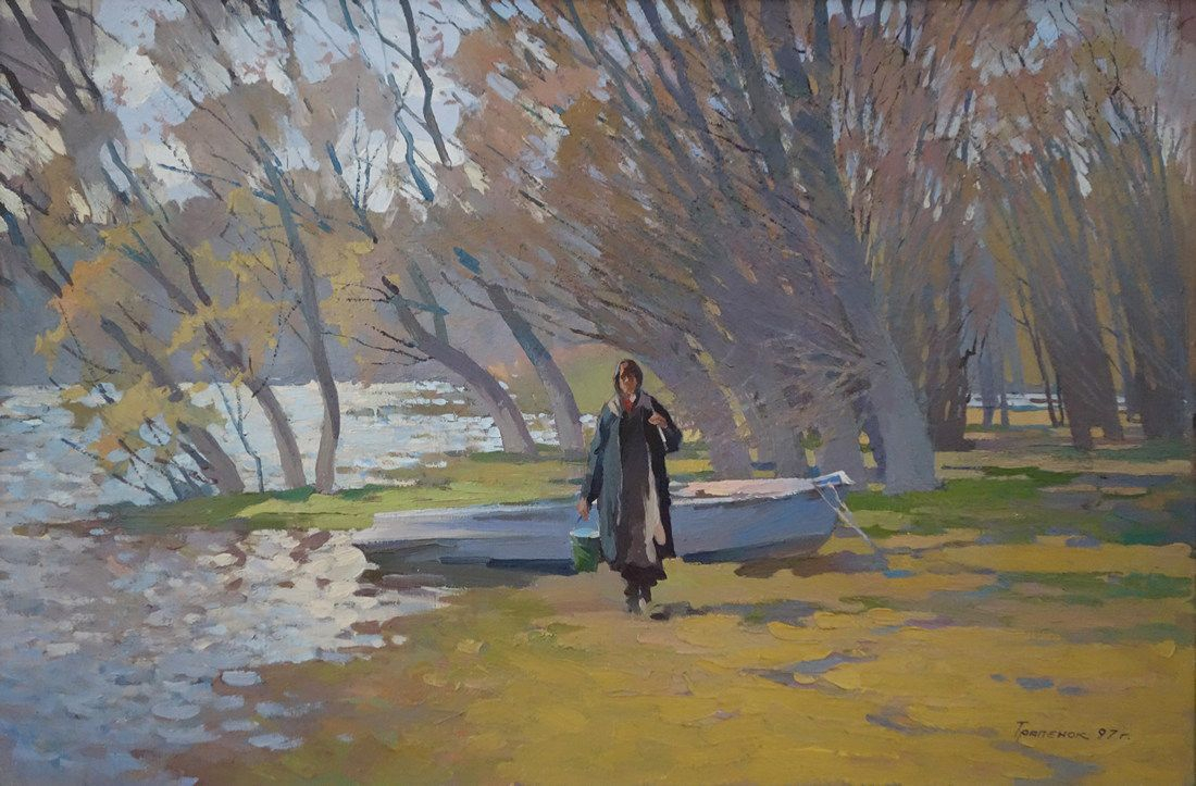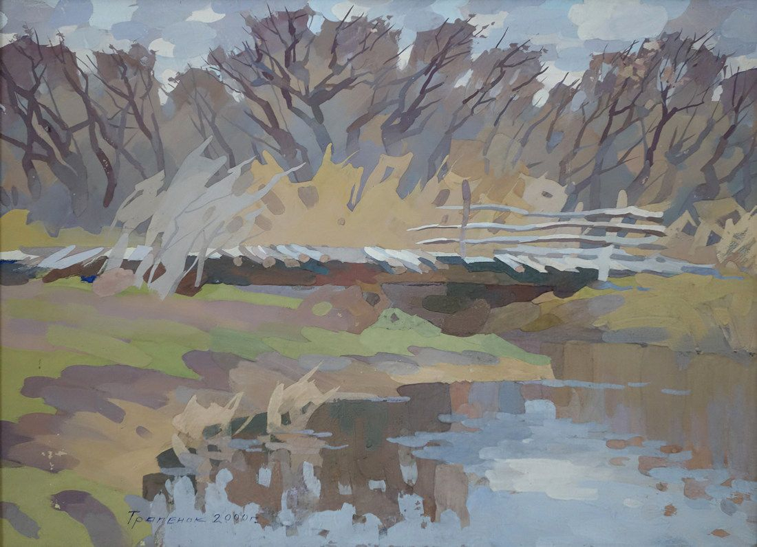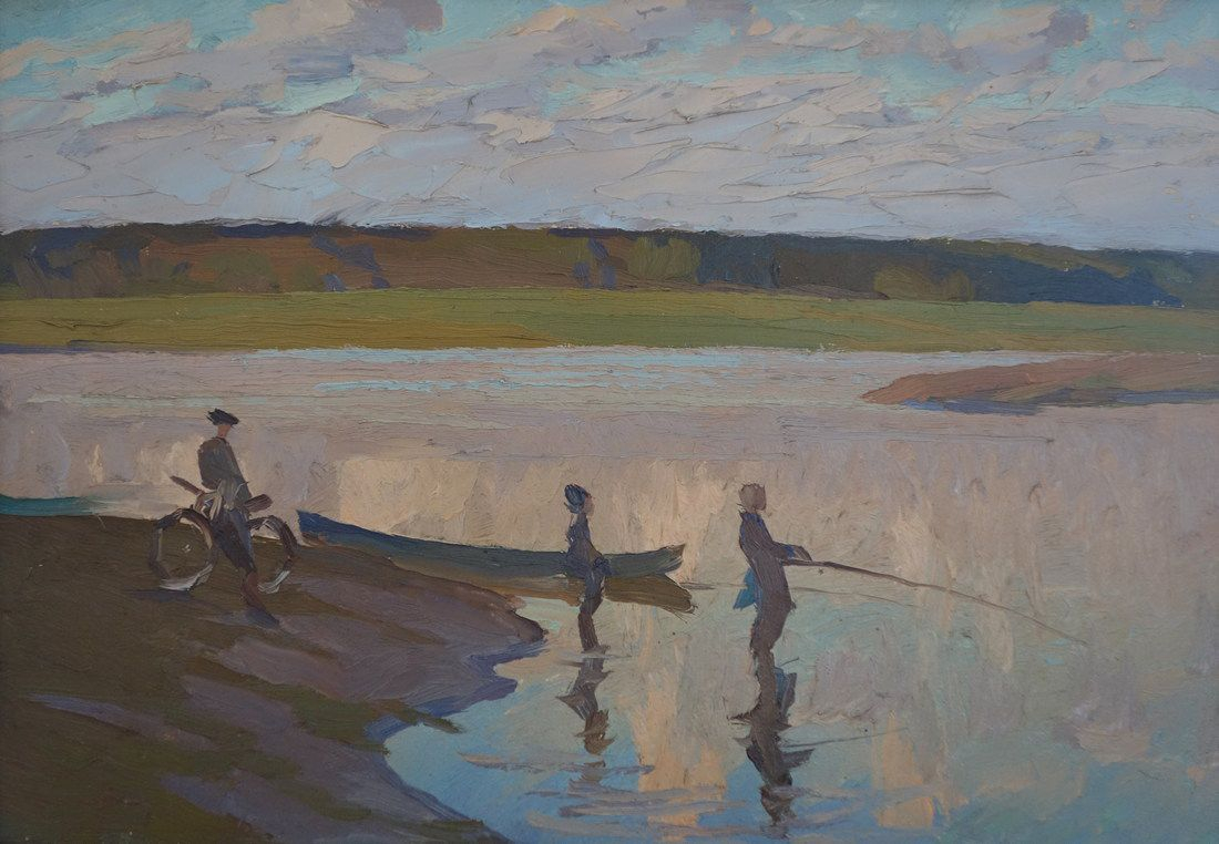 «Смотри, какая красота!»– сказал Макс Афанасьев по дороге с выставки: по краям большой коричневой лужи стоят две мамаши. Их дети, сидя на корточках, палками что-то ковыряют в грязи. Красота? Так вот ты какая? Но если представить это в коричнево-охристой гамме и манере Трапенка, то всё возможно…