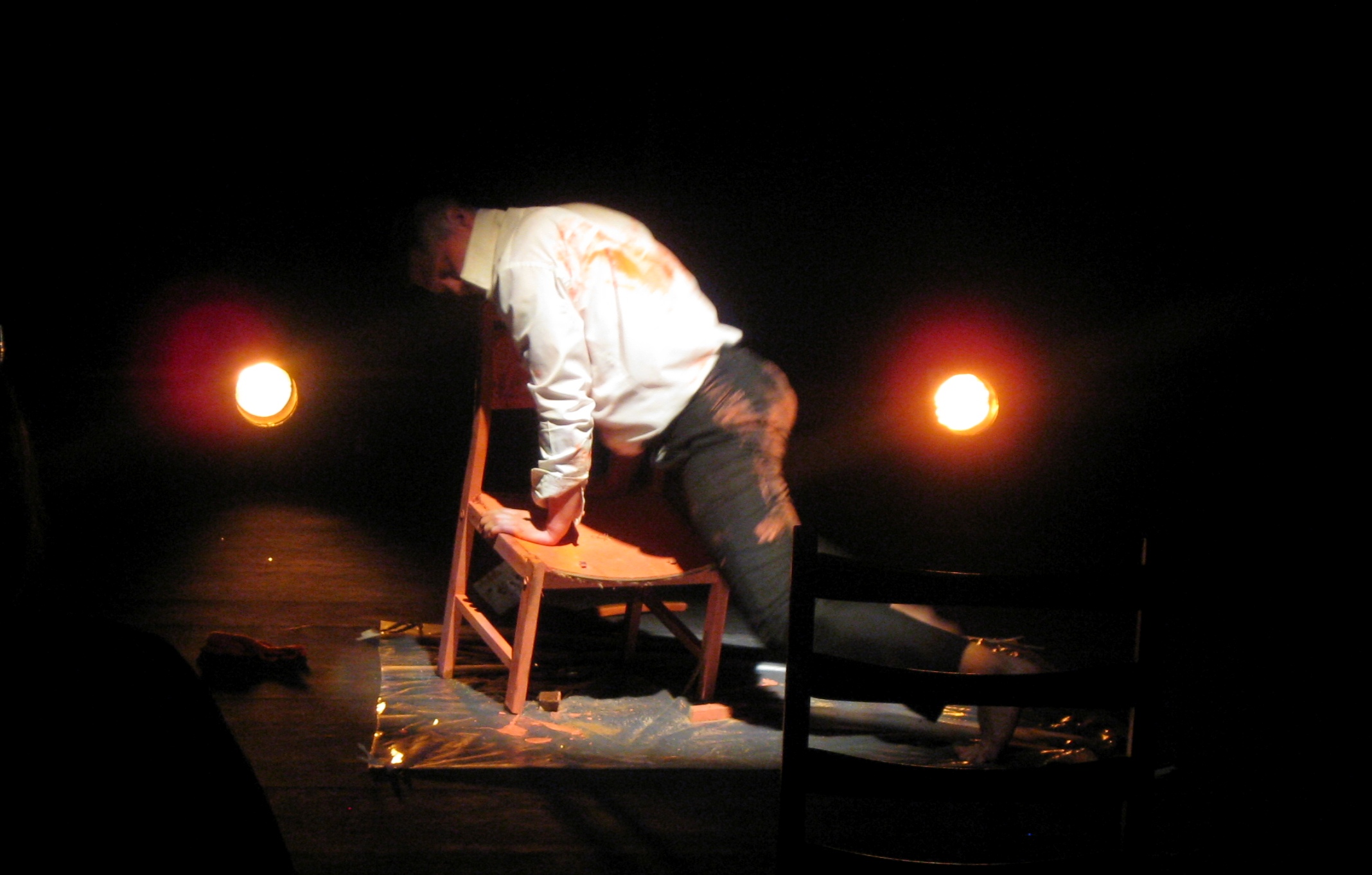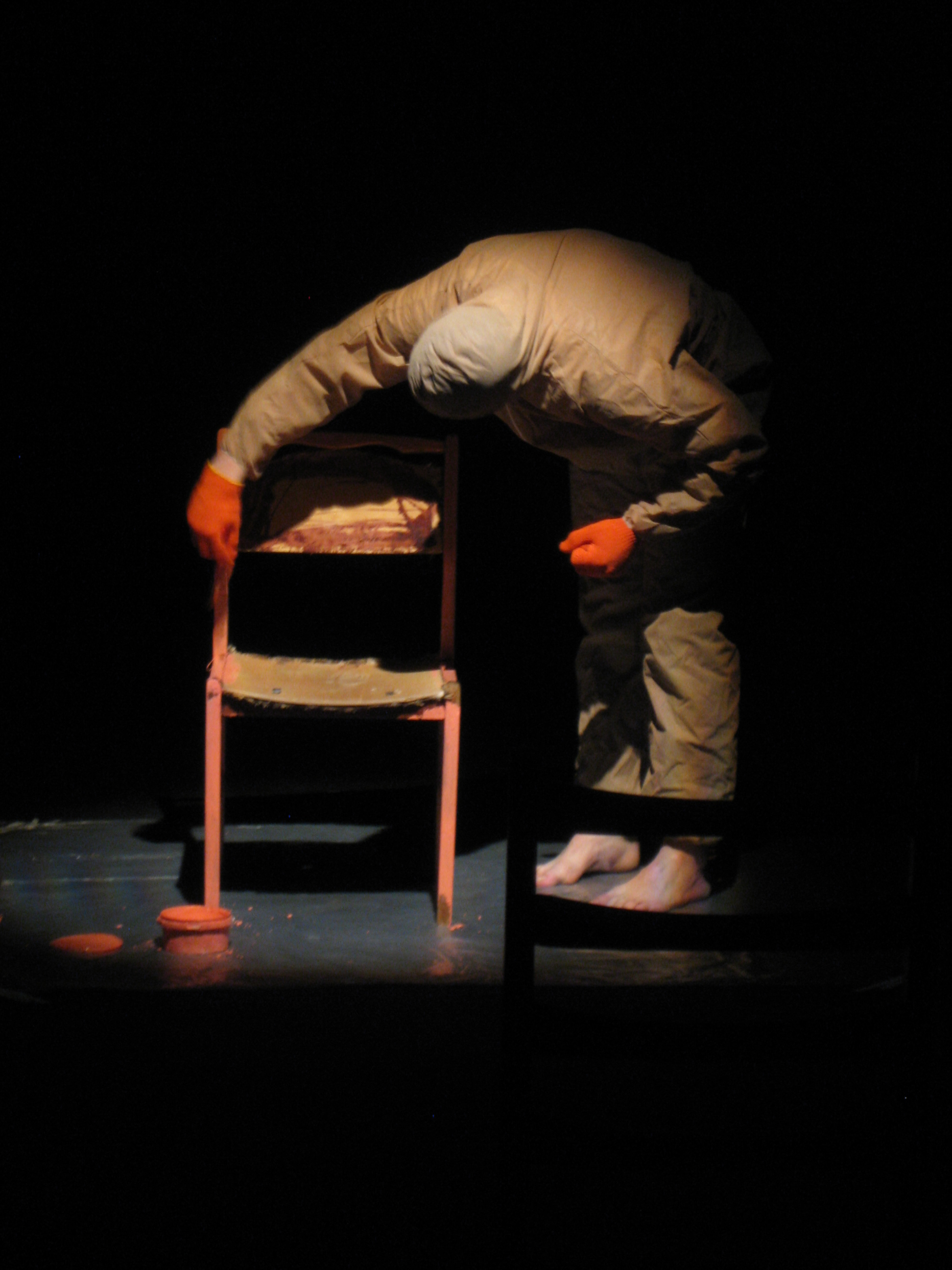 Честно говоря, я не сразу уловила связь между «красочным» разрушением стула, принятием вычурным поз на фоне этих трансформаций и портретами диктаторов/полководцев, развешанных по стенам. То, что это гимн перфекционизму любой ценой, Антон объяснил еще вначале представления.