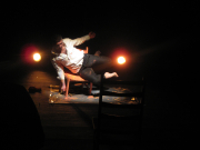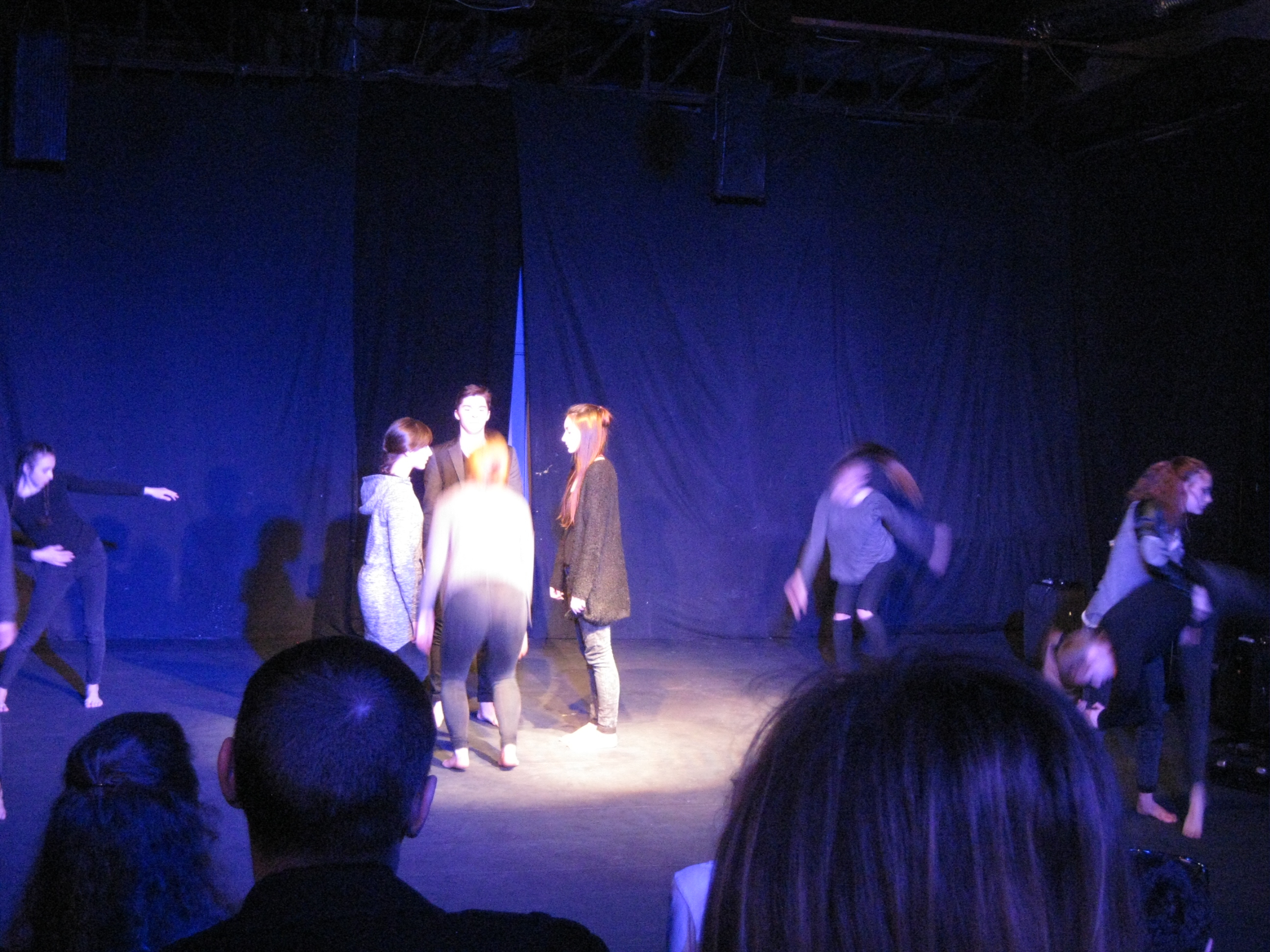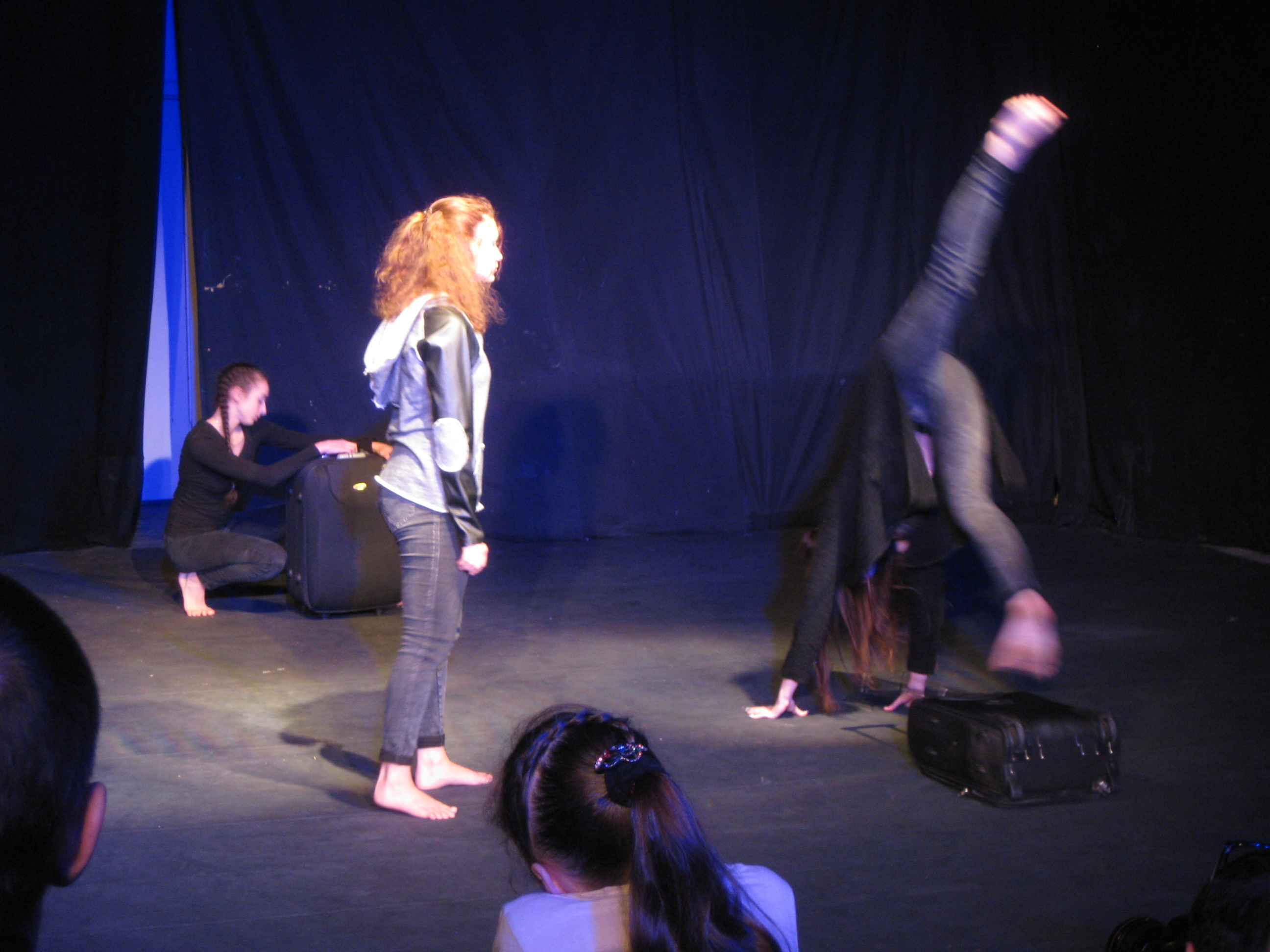 Молодёжь рвётся заграницу из Украины – такой вот лейтмотив, так было написано во флаере. А если бы было написано «Ботанические зарисовки» или «Напряжение одуванчика»? Какова сила слова в современных танцах? – я бы так поставил вопрос. Слово в танце, как предмет в беспредметной живописи. В «Праве выбора» Юлии Гришиной ни с того, ни с сего рассказанная считалочка, с последним «… десять – вас всех повесят» долго еще растворялась в воздухе под продолжающийся танец персонажей «Да», «Нет» и «Наверное», то и дело пытающихся переходить границы. В перформансе Антона Овчинникова «словом» выступили портреты диктаторов (среди них затесался Калашников), которые сбили моё собственное представление о происходящем. У Тарабаровой – багажные сумки и звуки аэропорта. У Юлии Артёменко задала тон первая фраза – «родился я в степи». И ничего не поделаешь, степные травы (т.е. молодёжь) мучительно долго расползались по Европе. Понятно, что у зрителей возникли вопросы без ответов, поскольку понимайте в границах и возможностях собственной разнузданности. И вот она сила и слабость во время озвученного слова и обозначенного образа. Когда баланс соблюден – чувствуешь себя комфортно, но выбивать из комфортного состояния – тоже распространённый приём в современном искусстве.