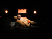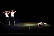 А вот лампасы рождали как раз нужные эмоции – полнейшую безысходность плюс ритмически работали в пандан с линиями, которые перформеры скотчем выкладывали на сцене. За этой геометрической перекличкой было любопытно наблюдать.