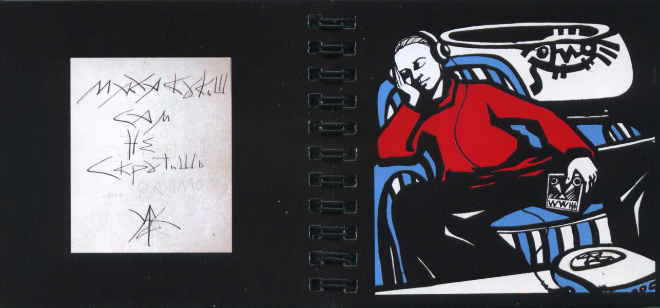 Только спустя несколько лет после переезда я решился довести эту работу до ума. Пройтись от начала до конца китайской тушью по бумаге для слепых. К 2007-у я выдал ч/б альбомную версию. И положил на полку.