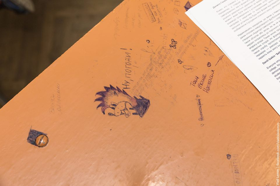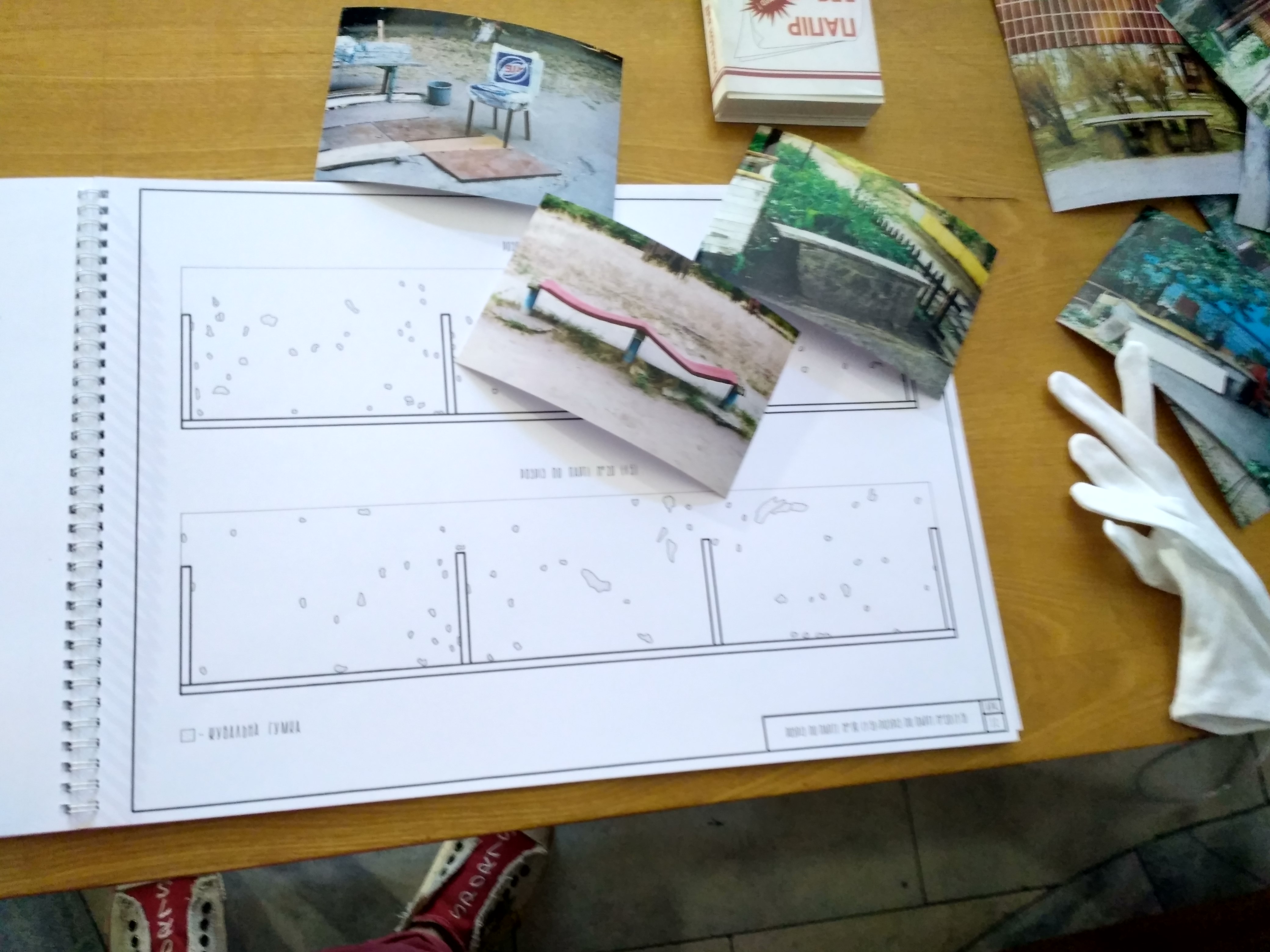 Остроумный «Альбом фиксации жевательных резинок под партами аудитории № 510 Приднепровской академии строительства и архитектуры» - просто песня! Безупречно выполненные чертежи расположения «жевачек» под партами, с осторожностью листаемые зрителями (белые перчатки прилагаются) – метафора непростых отношений между студентами и академией. Собственно, пространственное воображение можно развивать и таким анти-гигиеничным способом. Форма-то – архитектурные чертежи – самая для преподов релевантная.