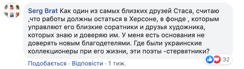 Может быть это и не такое важное событие. Не Малевича же архив передан, а только лауреата премии имени Малевича. Для Киева это, наверное, не очень важное приобретение, а вот для Херсона – это потеря значительная. Для Херсона в целом, для художественного сообщества, для друзей Стаса.