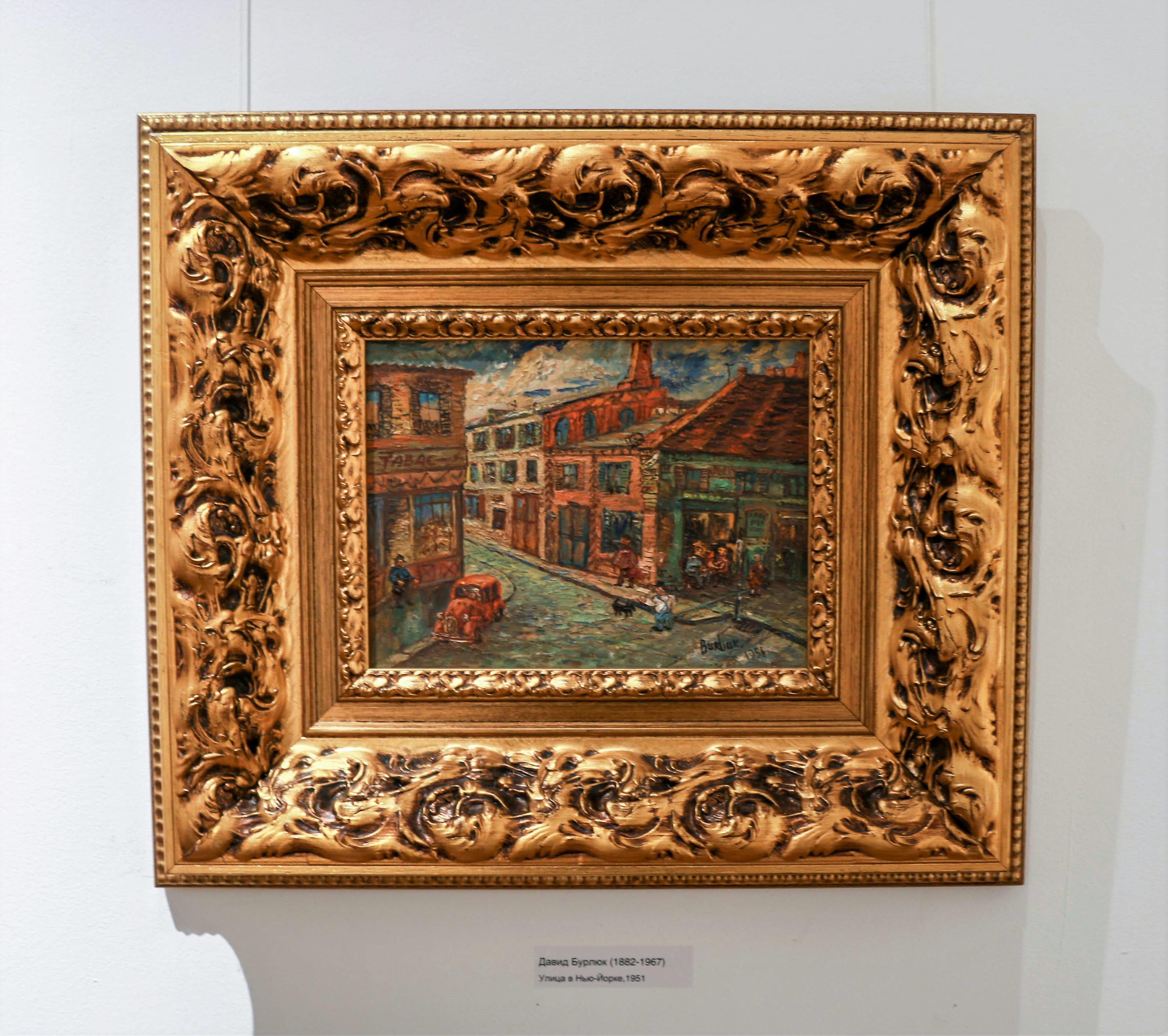 Отдельный зал посвящён Давиду Бурлюку. Я им занимаюсь много и подробно. То, что я мог себе позволить, это работы американского периода. Бурлюк за свою жизнь написал больше 17000 работ – гнался за Уильямом Тернером, знаменитым своей плодовитостью. Мечтал пережить Толстого (скончавшегося в 82 года). И добился своего – прожив 85 лет. Они с последним секретарём Толстого, Валентином Булгаковым, дали друг другу обещание дожить до этого возраста. Бурлюк писал: «75-летие моей жизни: 27375 прожито дней, или 3 билл. 750 мил. ударов сделано сердцем». Он прожил в Америке 45 лет. В Одессе он дважды учился в художественном училище и окончил его в 1911 году. Потом уже уехал учиться в Москву.