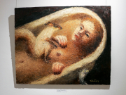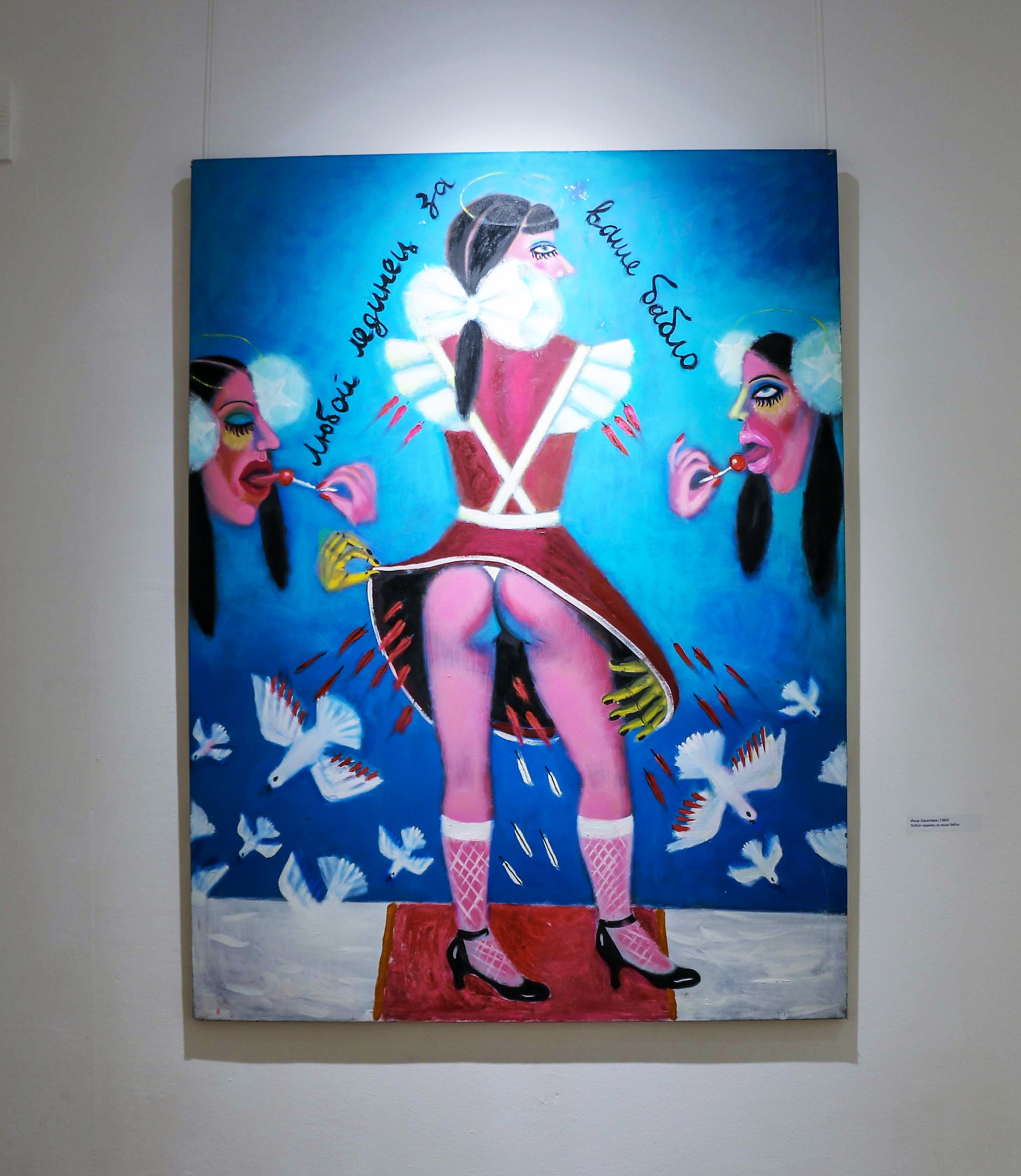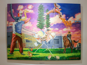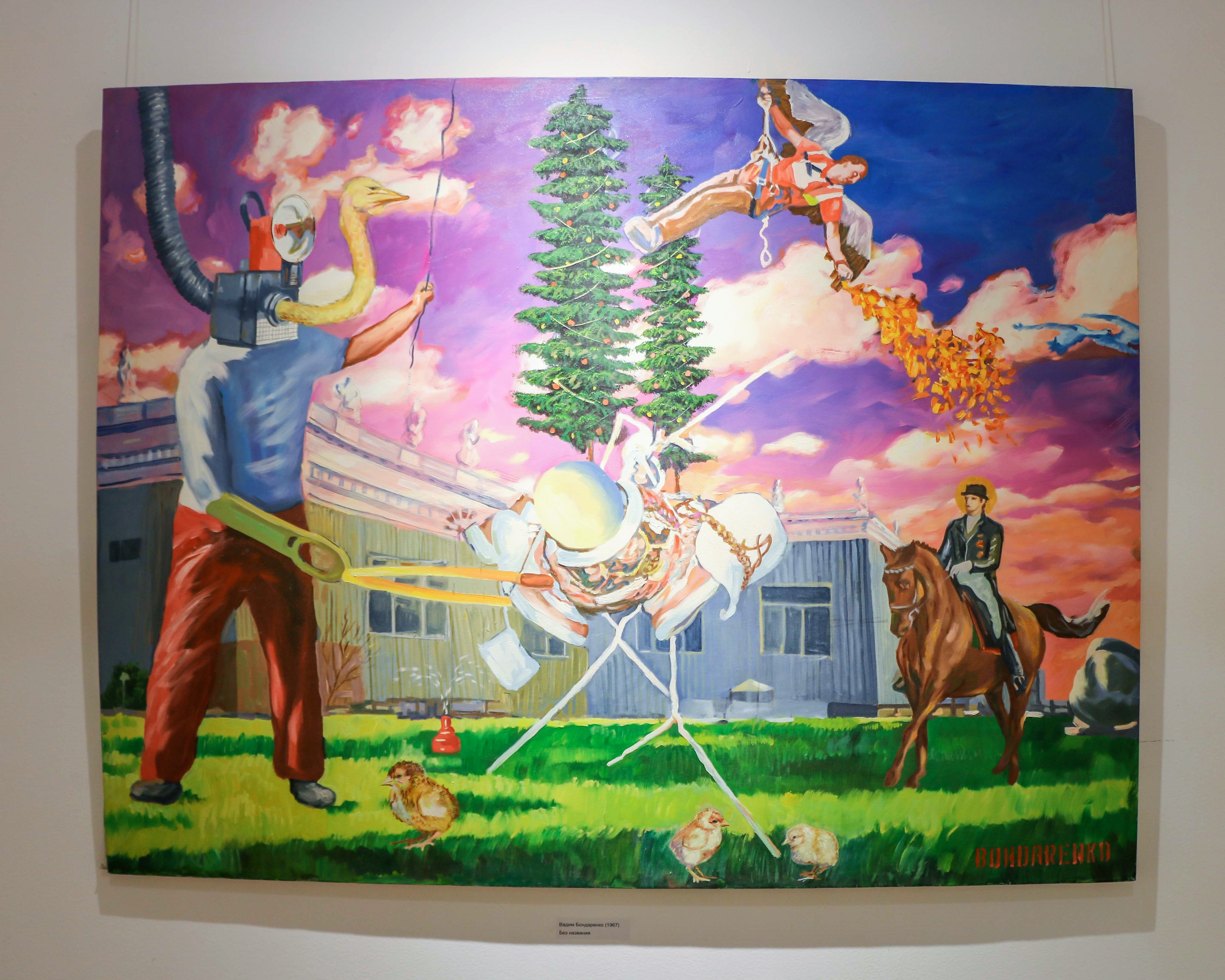 Три завершающих зала – современная живопись. Игорь Гусев, Александр Ройтбурд, Дмитрий Дульфан, Инна Хасилева, Стас Жалобнюк, Вадим Бондаренко и многие другие. Тут уже масштабные, большие работы. Вообще эта выставка – прекрасная возможность увидеть свою коллекцию со стороны. Всё, что дома стоит штабелями.