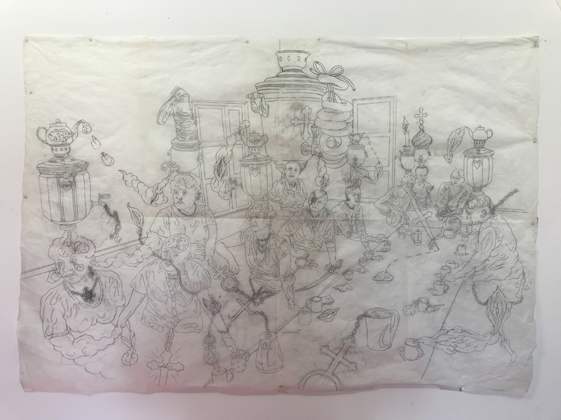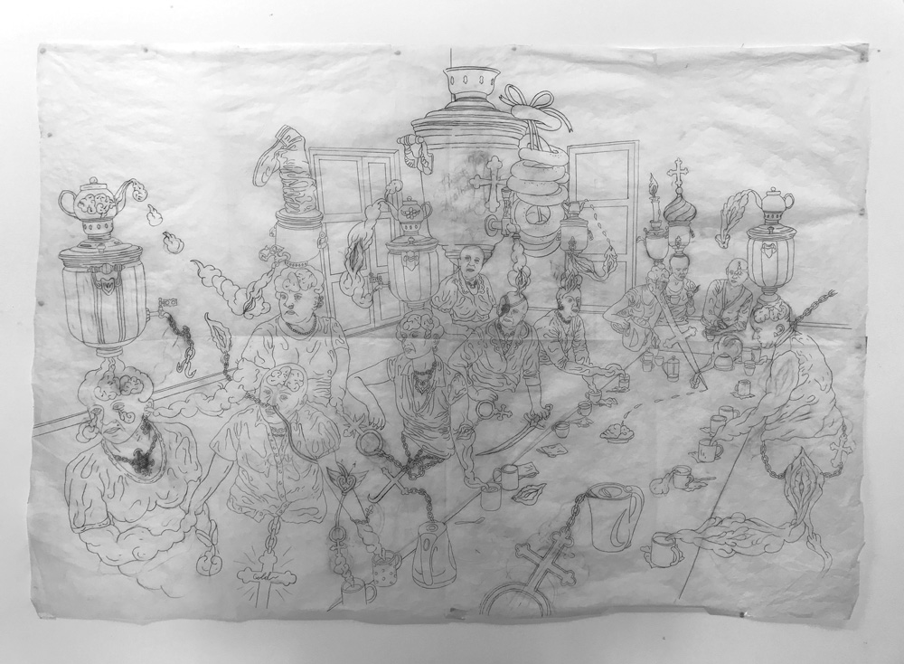 Гипертекстуальность его творчества ощутима даже в экспонированных «кальках», на которых не всегда можно с ходу разобрать текст или изображение. И это дополнительное усилие – еще более глубокий «нырок» в концепт. И без того насыщенный художественный мир Стаса в «Оригиналах» оброс «плотью» энигматичности, подспудно призывая зрителей разгадывать, рассматривать, погружаться – без перегруженности или, наоборот, упрощения. Последнее сильнее всего будет вредить работе по осмыслению творчества Волязловского. Упрощая – унижаем и уничтожаем: суть, смыслы, автора. И выставка «Оригиналы» выглядит как реконструкция художественного опыта Стаса, с четкими акцентами на нем как на самобытнейшем художнике, эмпатичном по отношению к нашей сумасшедшей реальности.
